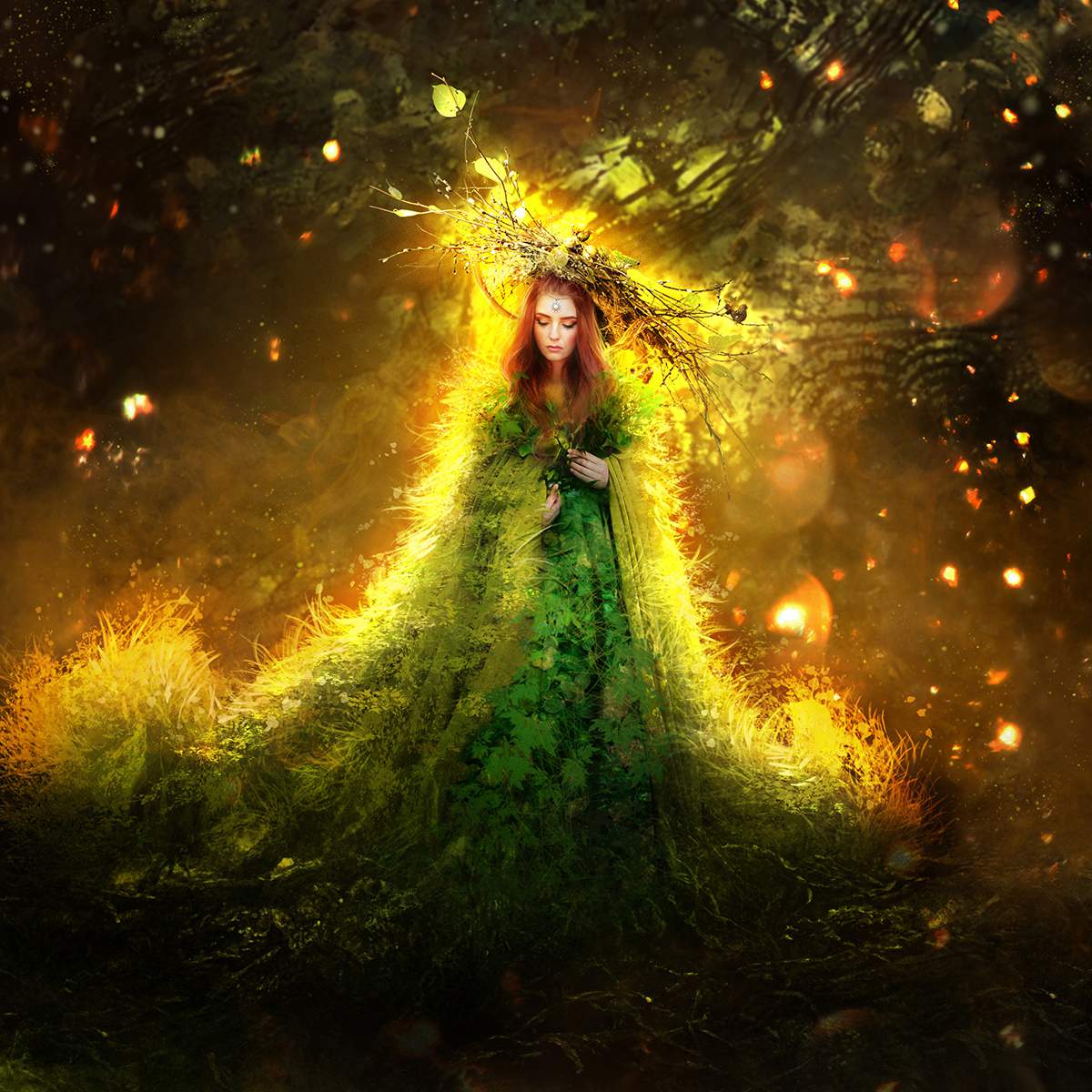Green dress magical woman
