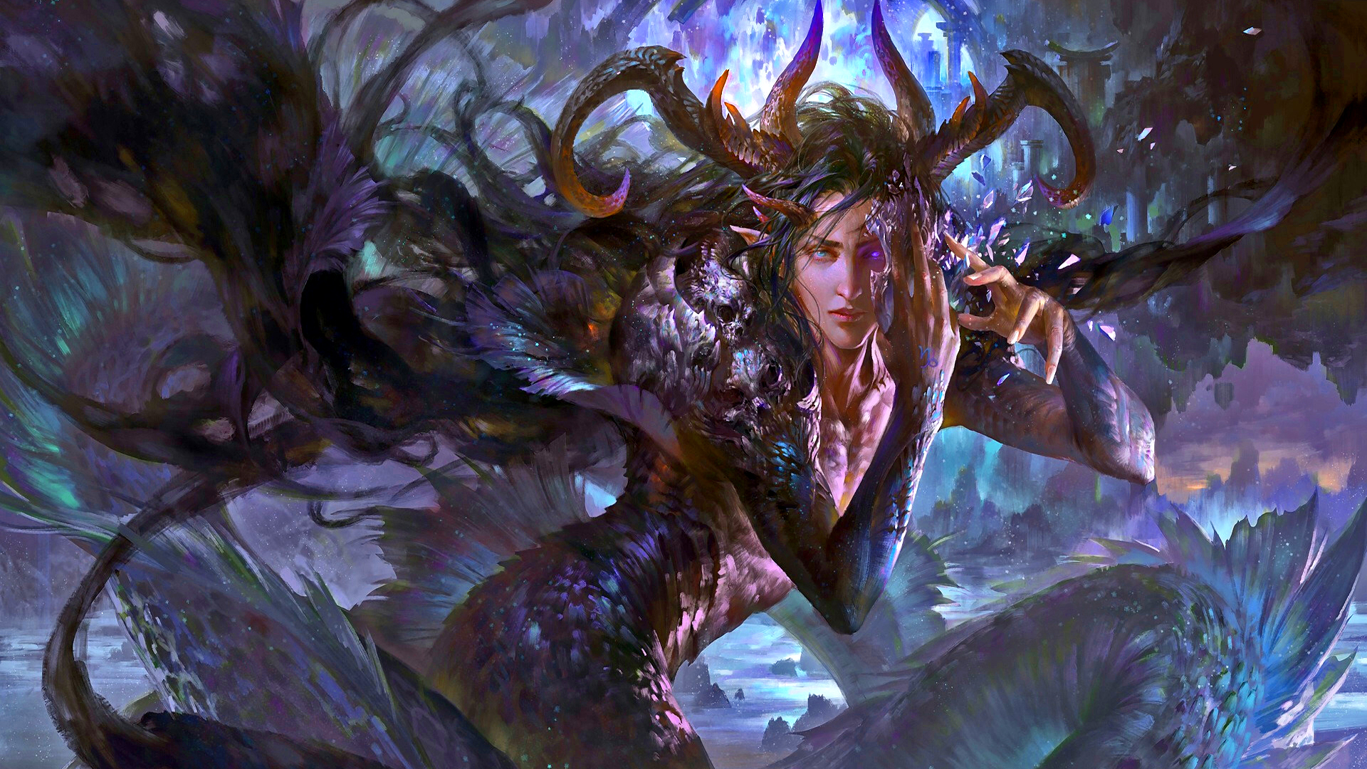 Capricorn Goat Fish Woman Ocean Horns
